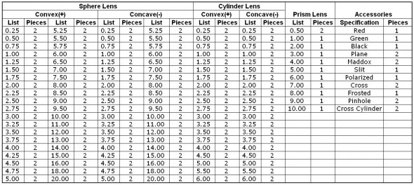 1Cet ensemble de lentilles d'essai est livré avec 266 lentilles d'essai, toute la puissance en 2 pièces ((1 paire),